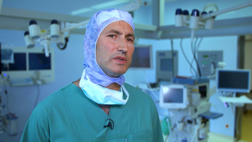 Es ist gegenüber der herkömmlichen Chirurgie also ein minimalinvasives Verfahren. Wir haben in aller Regel vier, maximal fünf kleine, ein Zentimeter große Zugänge zur zentralen Körperhöhle. Wir haben kleinere Instrumente und können präziser in den Schichten arbeiten.(3:02) Wir sehen es in 3D, HD bis zu zehnfach vergrößert. Ich kann mit Fluoreszenz meine eigenen Augen verbessern, sodass ich in anderen Wellenlängen gucken kann, somit auch in anderen Organtiefen gucken kann. Ich kann mir damit zum Beispiel Durchblutungssituationen visualisieren, wo es um hohe Präzision, um Nichtverletzung des Tumors geht, um Entfernung aller anhängigen Lymphknotenstationen, um nervenschonendes Operieren. Da erreiche ich ein viel höheres Maß an Präzision und somit auch an Lebensqualität.